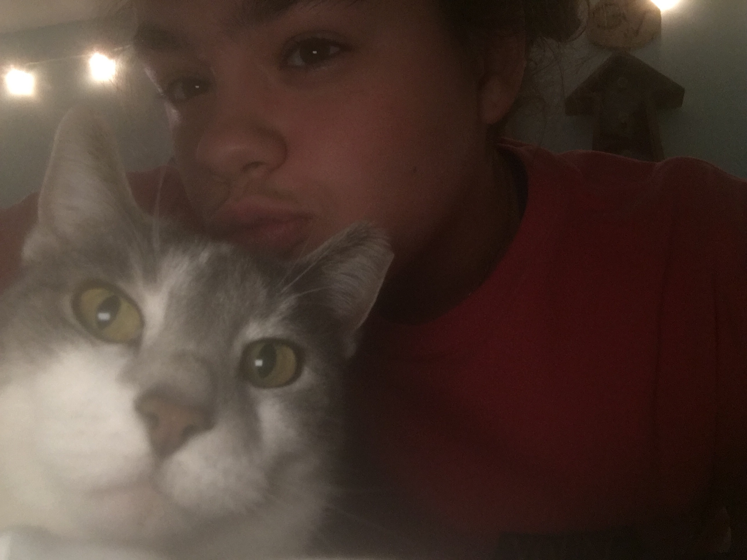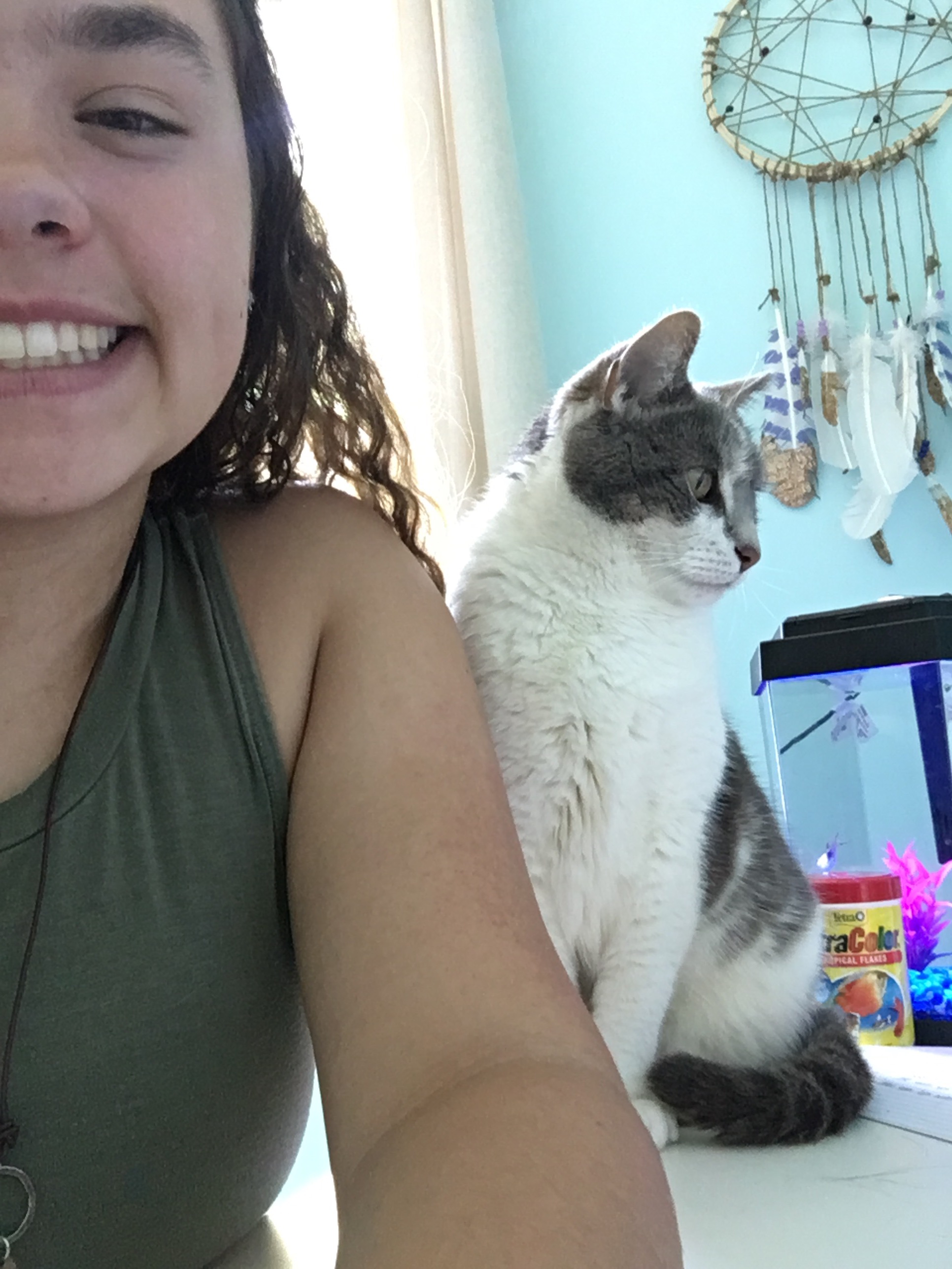 I heard a knock on my door and then, “We have a surprise for you.” My parents came in and handed me my cat who showed up at the door this morning. I just sat there holding her in shock, and thankfulness.