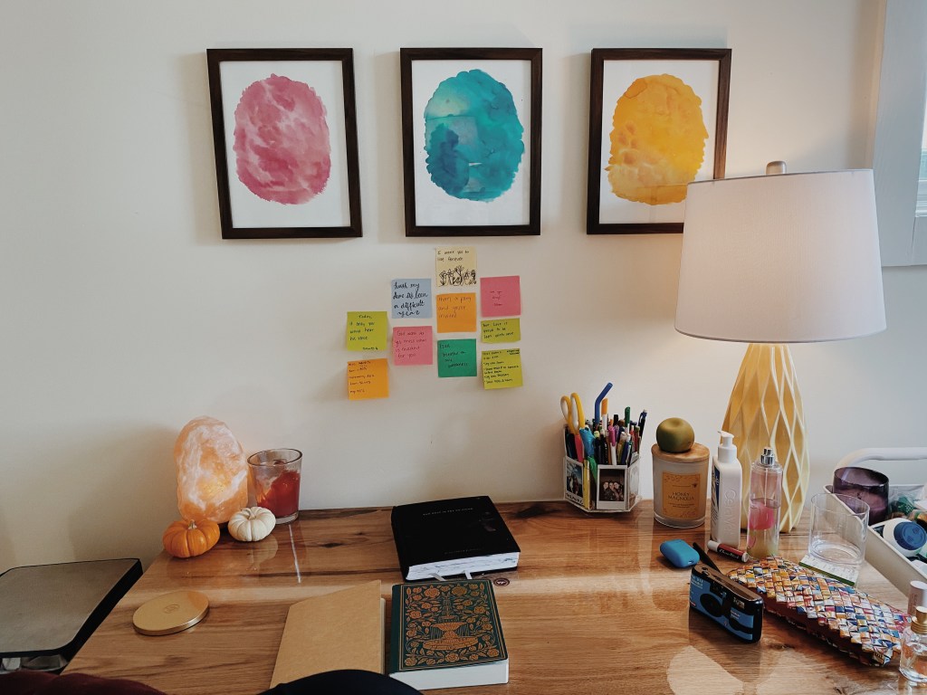 My desk where I spend a crazy amount of time. The fact that it isn’t clean is an honest depiction of life.