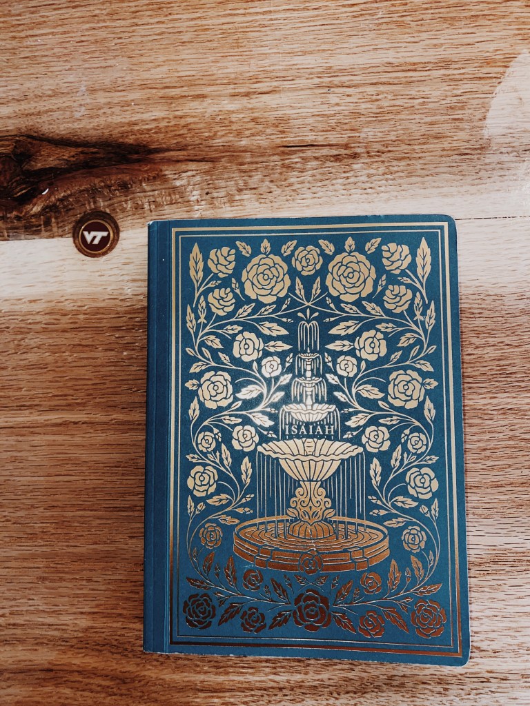 We are reading through Isaiah in church and I got this really pretty book of just Isaiah. Also, the VT pendant Dad put in my desk when he made it is one of my favorite things.