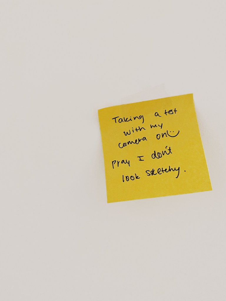 College with ‘rona- one of my professors watches us through Zoom taking exams so we don’t cheat.