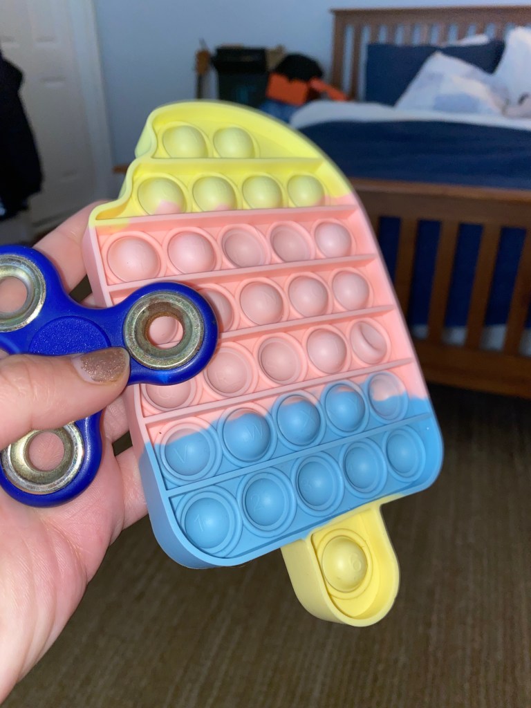 Fidget toys are highly underrated and I’m not sure why more people don’t have them. The poppers are everywhere now (my sister got me this one for Christmas), but more rare is my fidget spinner I have had since at least 2016. Not pictured: the play-dough and stress balls I have at school. Again, no justification for this except that they are fun.