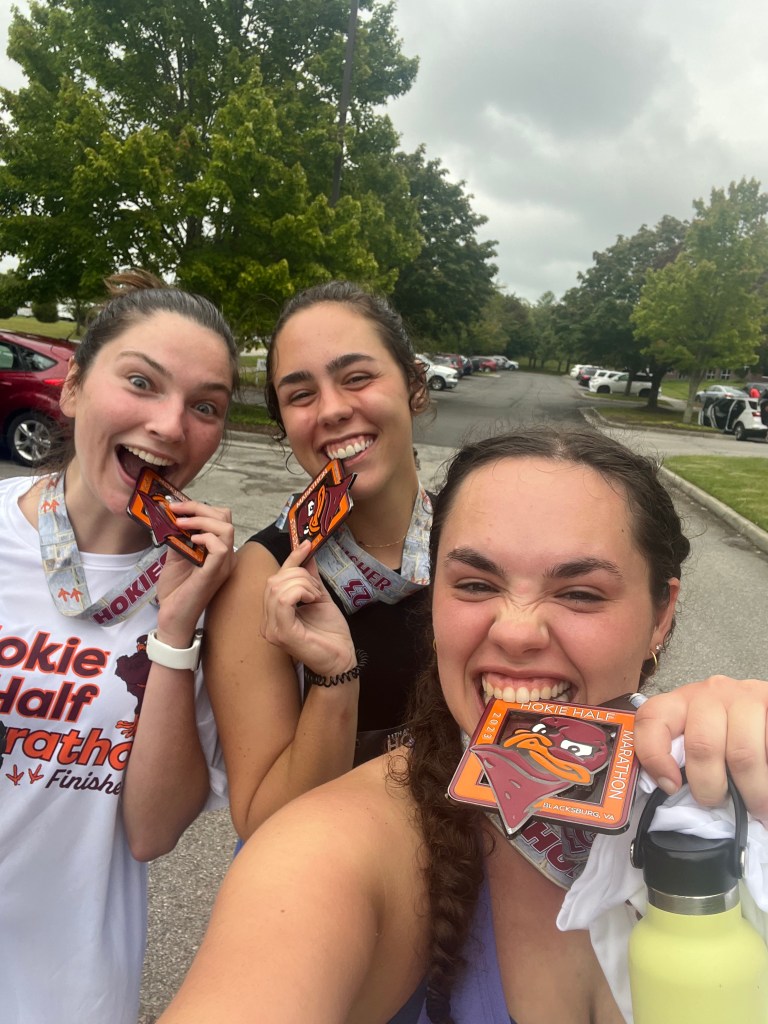 And I did. I ran the race a little slower than I wanted, the hills at miles 9 and 11 got me, but overall I ran the race I trained for. It was overcast in Blacksburg, which I was so thankful for considering my worst fear was probably scorching heat on race day. Like always, the Blacksburg breeze was blowing. I was inspired by everyone cheering each other on in the race. And I was so glad to finish.